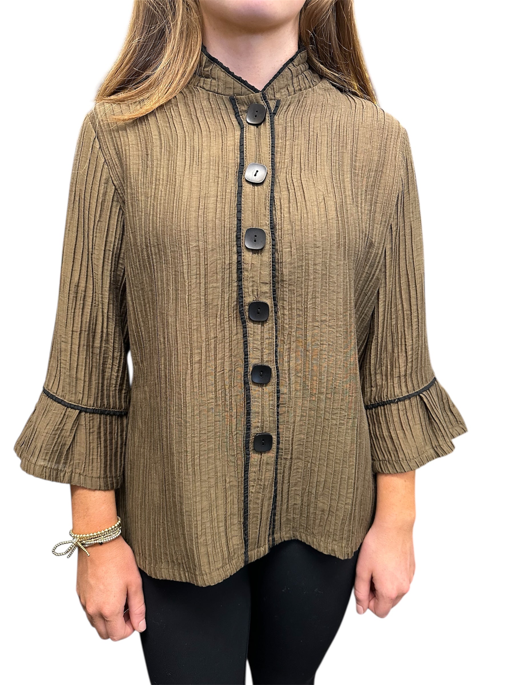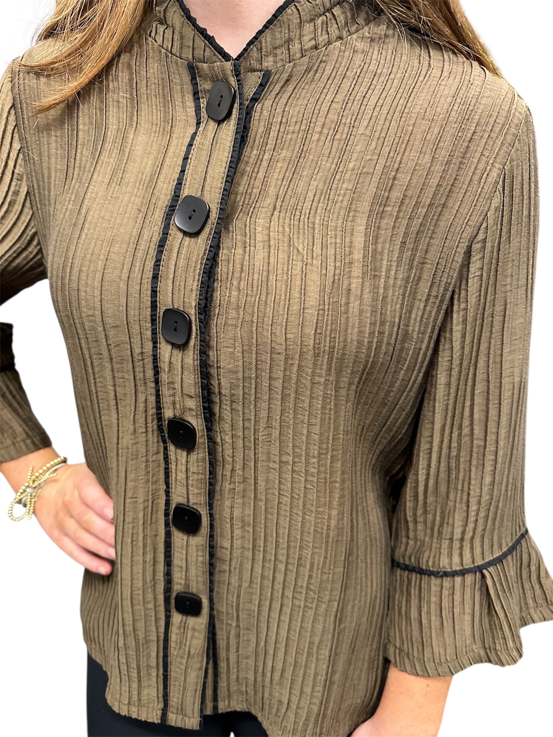 Featuring a sculpted wire collar and soft 3/4 bell sleeves, this printed blouse combines wearable art with everyday elegance. Whether you're dressing for brunch, travel, or meetings, this blouse delivers comfort and polish in one graceful silhouette.