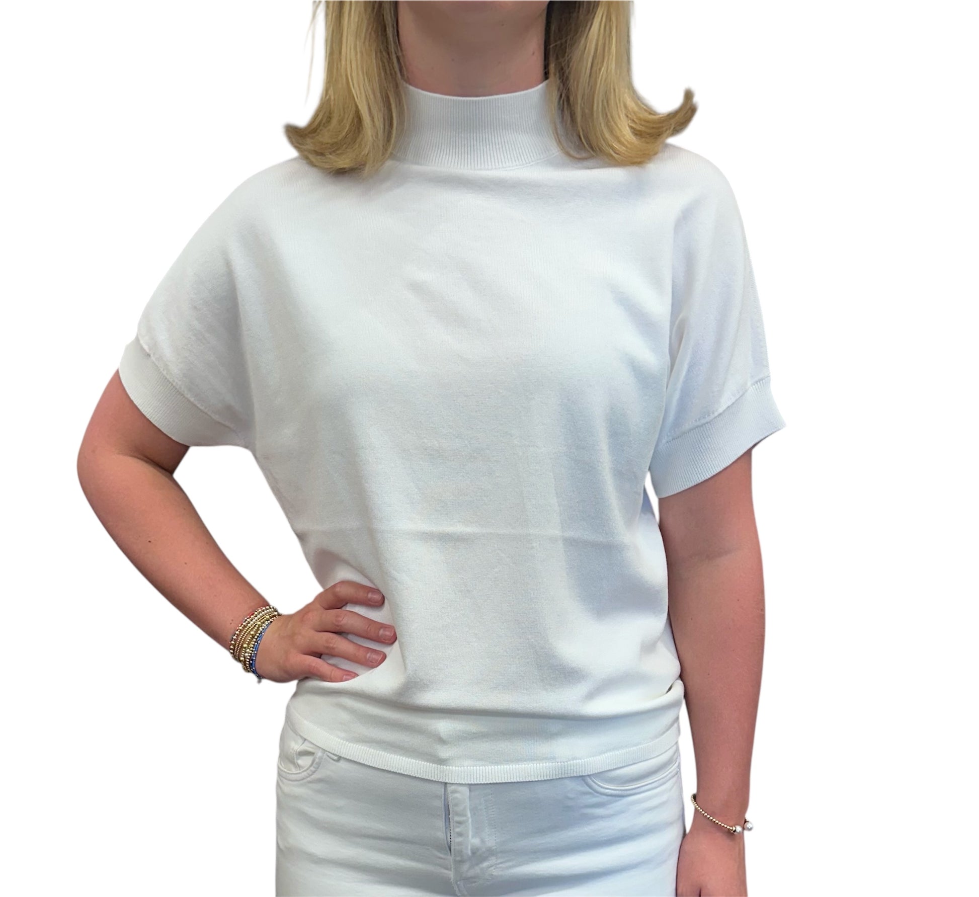 Mock neck, short sleeve ribbed hem sweater with a boxy fit.