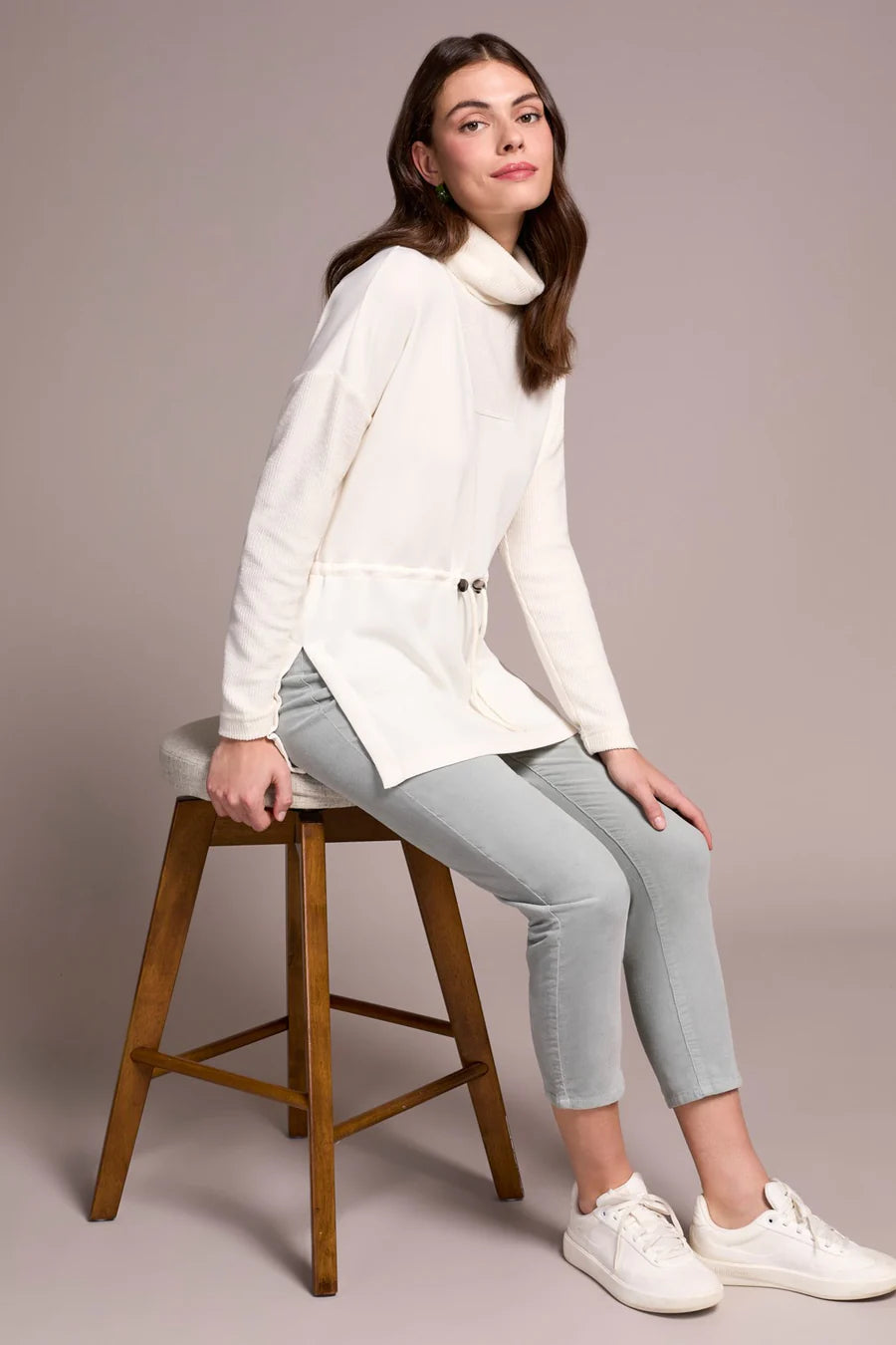Stay effortlessly cozy in a long-sleeve top featuring a poised turtleneck and an adjustable inner drawcord that gently defines the waist for a flattering silhouette. Crafted from soft modal with a sand-washed finish, it offers a refined look and a luxuriously soft feel.