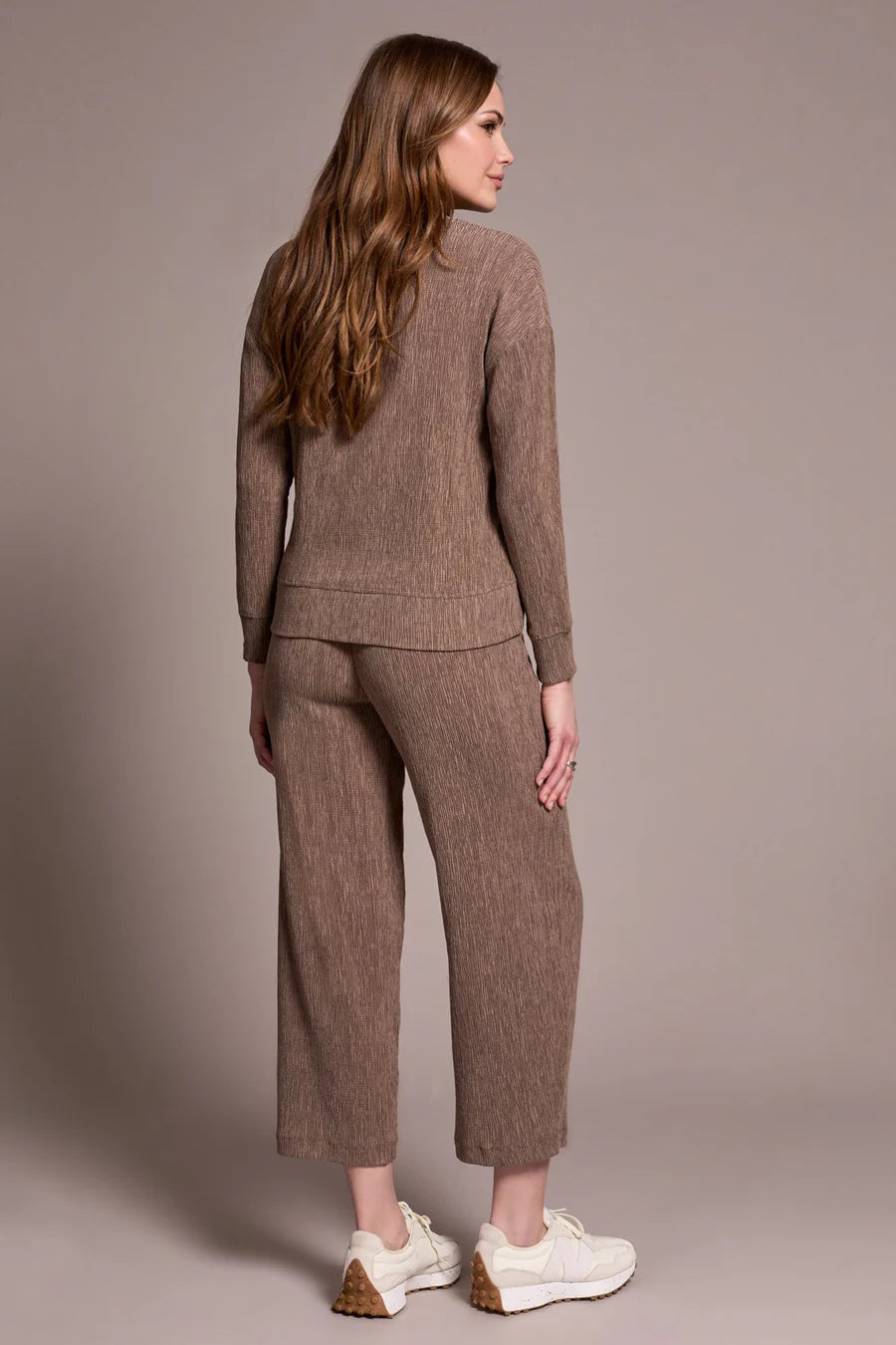Add a touch of refined charm to your wardrobe with this sophisticated top, where a sleek mock neckline and long sleeves offer both warmth and style. The two-tone crinkle knit fabric creates rich, textured depth, while the relaxed fit drapes beautifully for a look that’s as polished as it is comfortable.