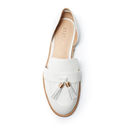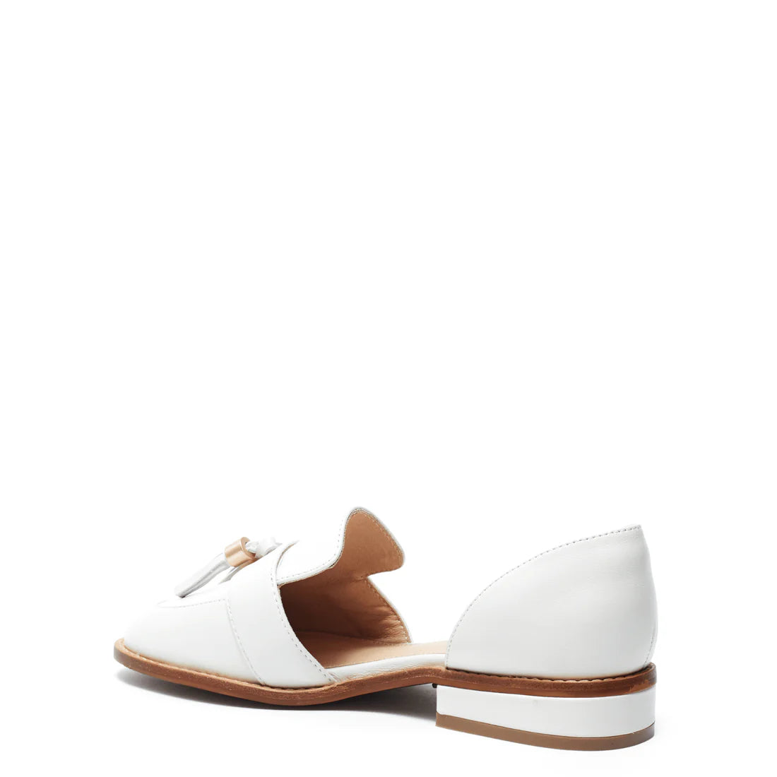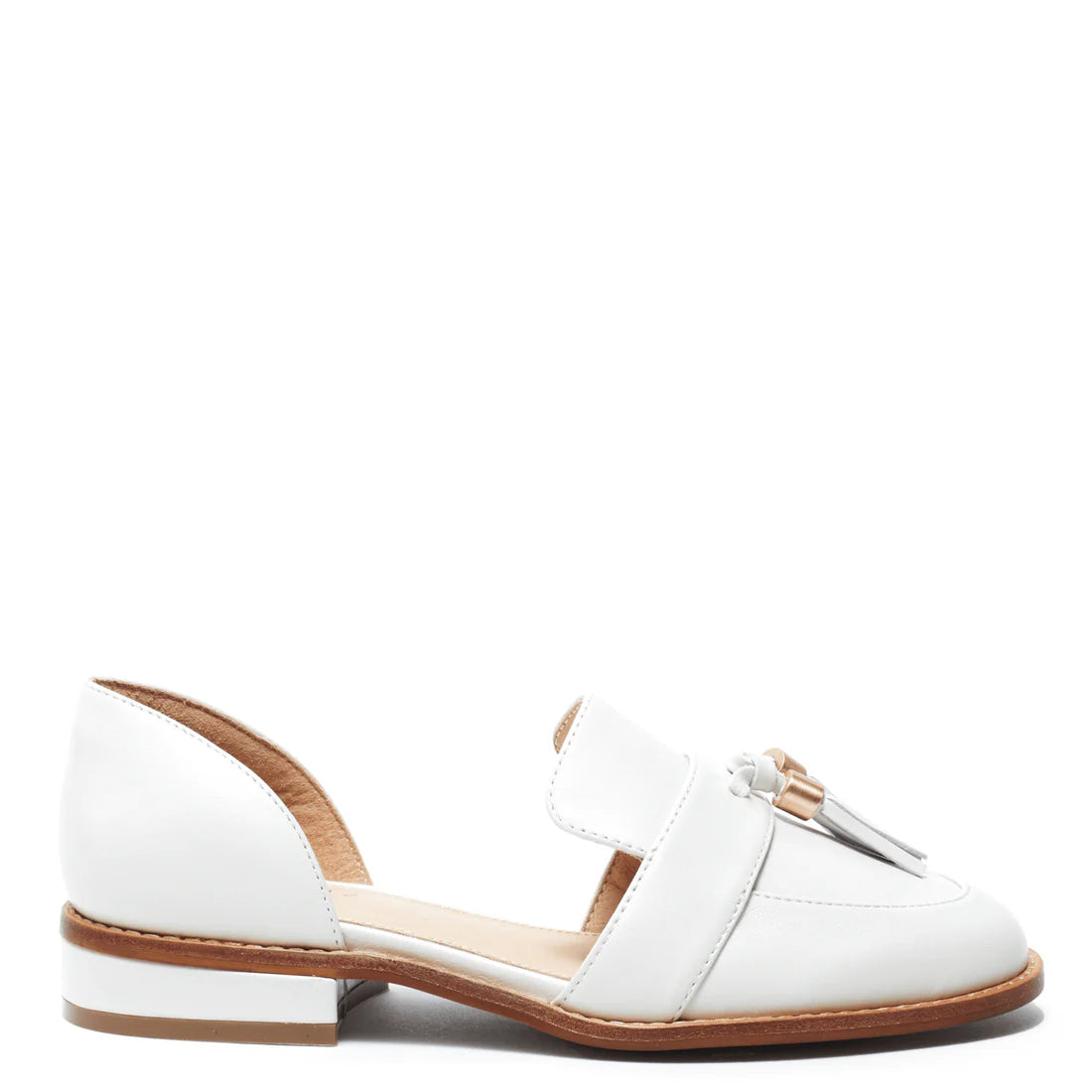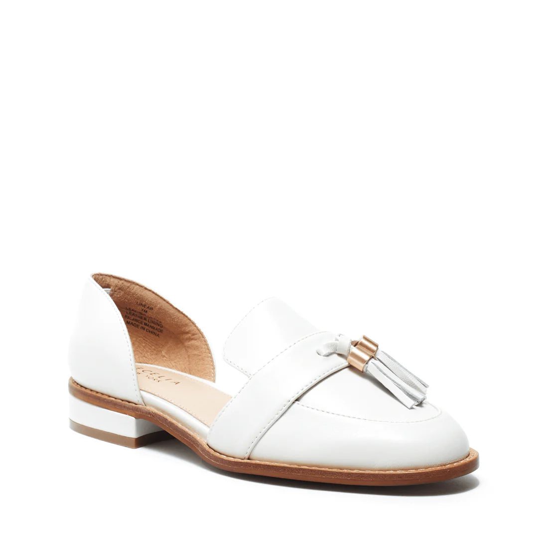 A d'Orsay design brings a contemporary feel to a classic penny loafer, The LINEAR is fronted by an apron toe with tassels and set on a low stacked heel.