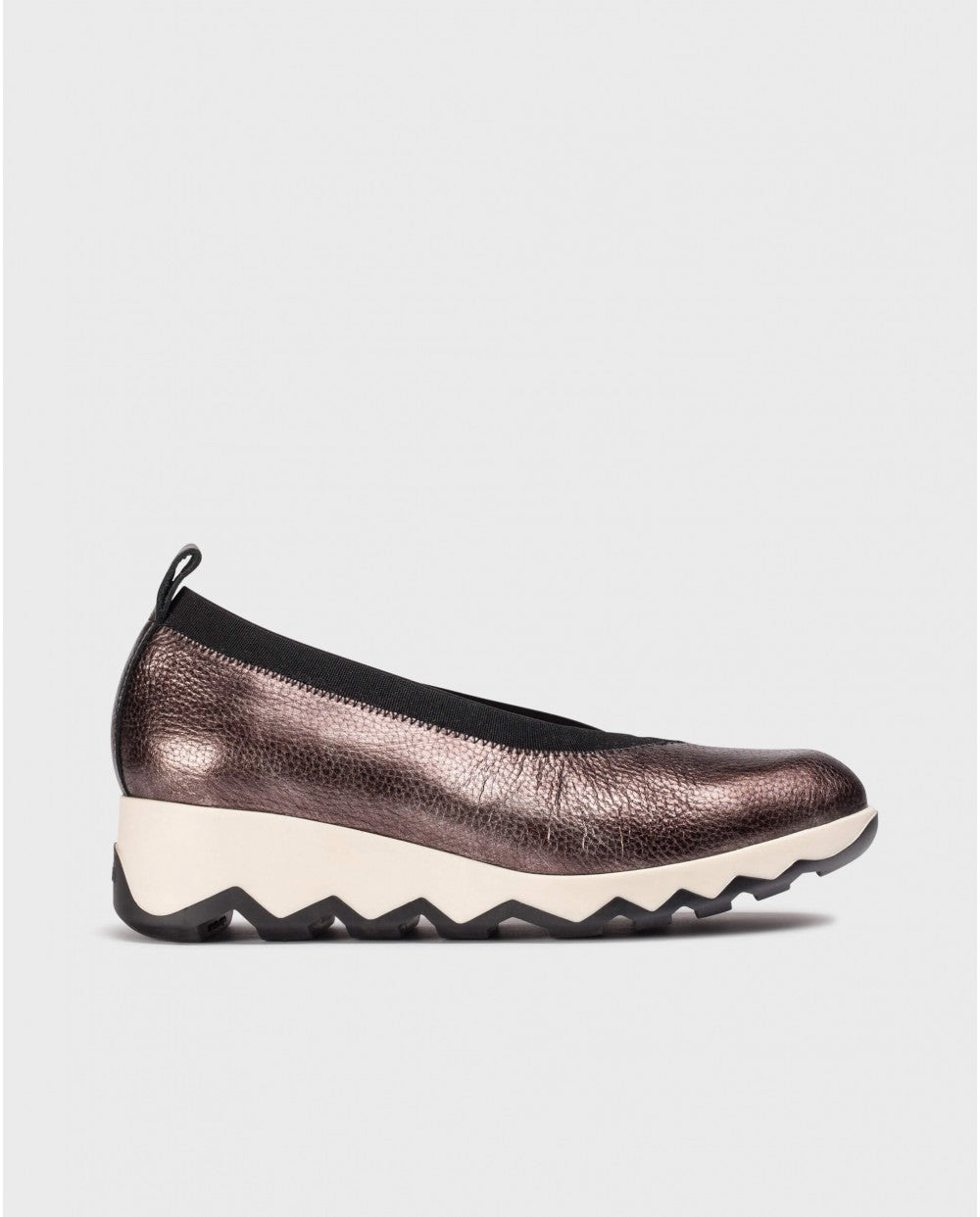 SIMÓN 10 shoes crafted in metallic lead leather. This contemporary and sophisticated model redefines comfort with an elasticized edge that ensures a perfect fit and snug wear. The two-tone serrated sole developed with EvoLight technology provides lightweight cushioning and flexibility, while the MemoryGel insole ensures exceptional comfort.