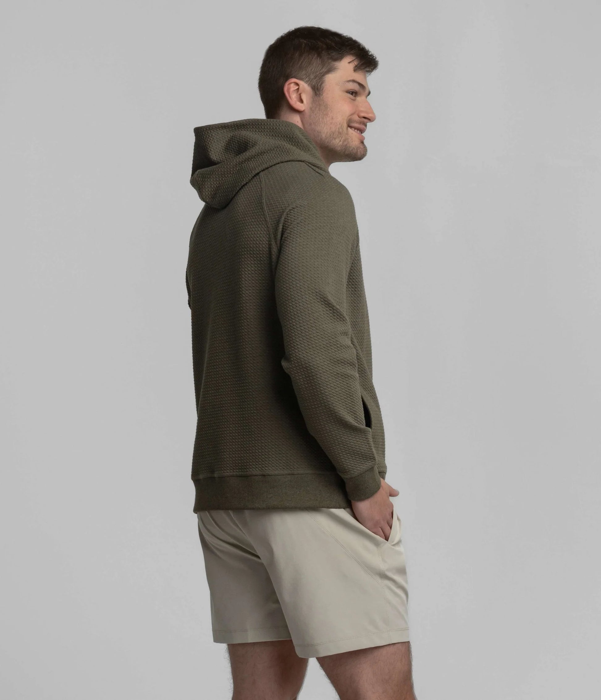 The Dallas Hoodie is what happens when your favorite sweatshirt grows up. Made from our signature Dallas textured knit, it has that soft, lived-in feel with just enough structure to keep things polished. The side-entry kangaroo pockets give you everyday function—without the usual bulk across the front.