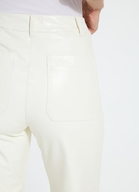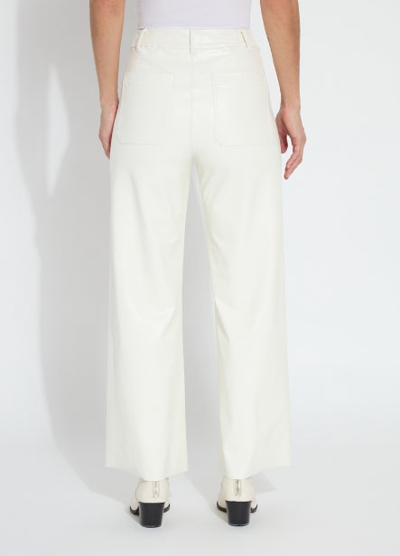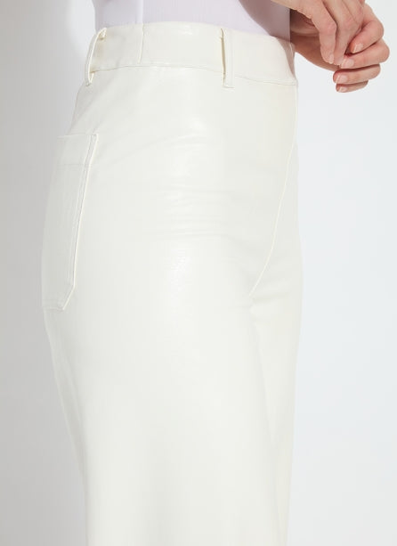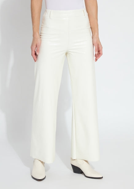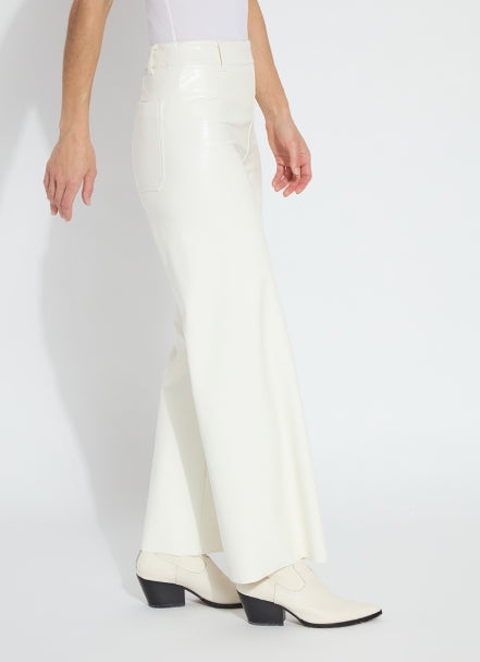 The Hi Waist Vegan Leather Wide Leg pant is fitted at the waist and hip before falling into a wide, ankle-length leg. Made from 4-way stretch Textured Vegan Leather, these wide-legged pants feature a concealed patented waistband, beltloops, patch pockets and no side seam for a slimming look. A raw-edge hem makes them simple to shorten. Partner these faux leather wide-leg pants with Lysséntial Long Sleeve and Amelia Moto Vegan Suede Jacket.