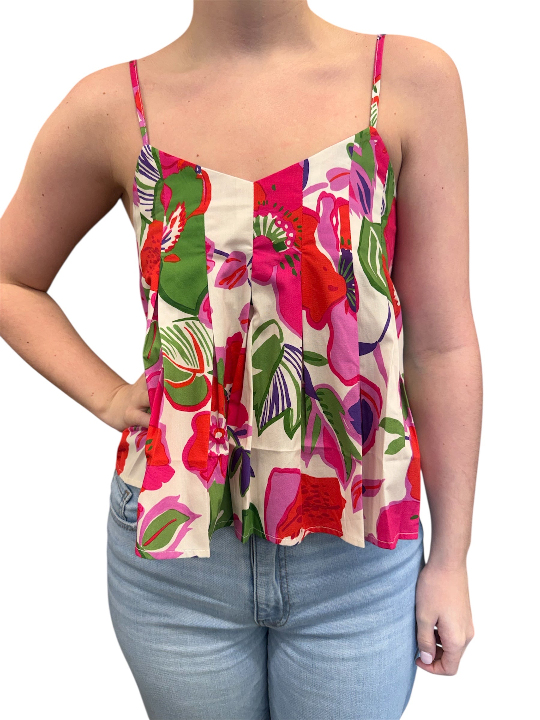 Floral print pleated top.